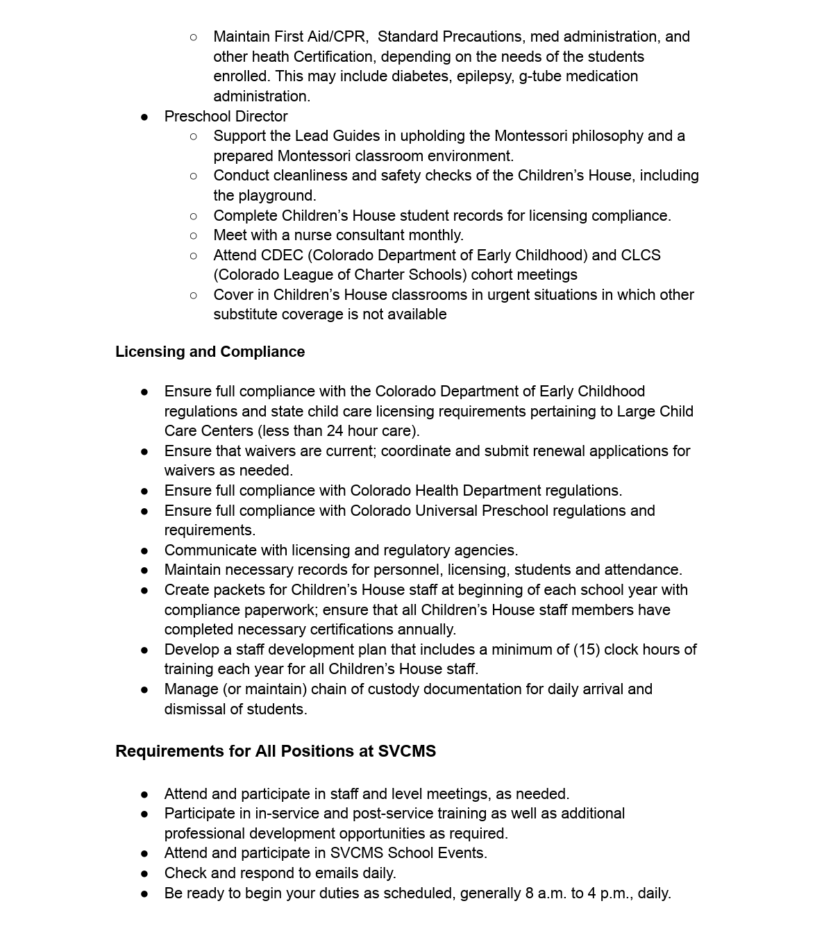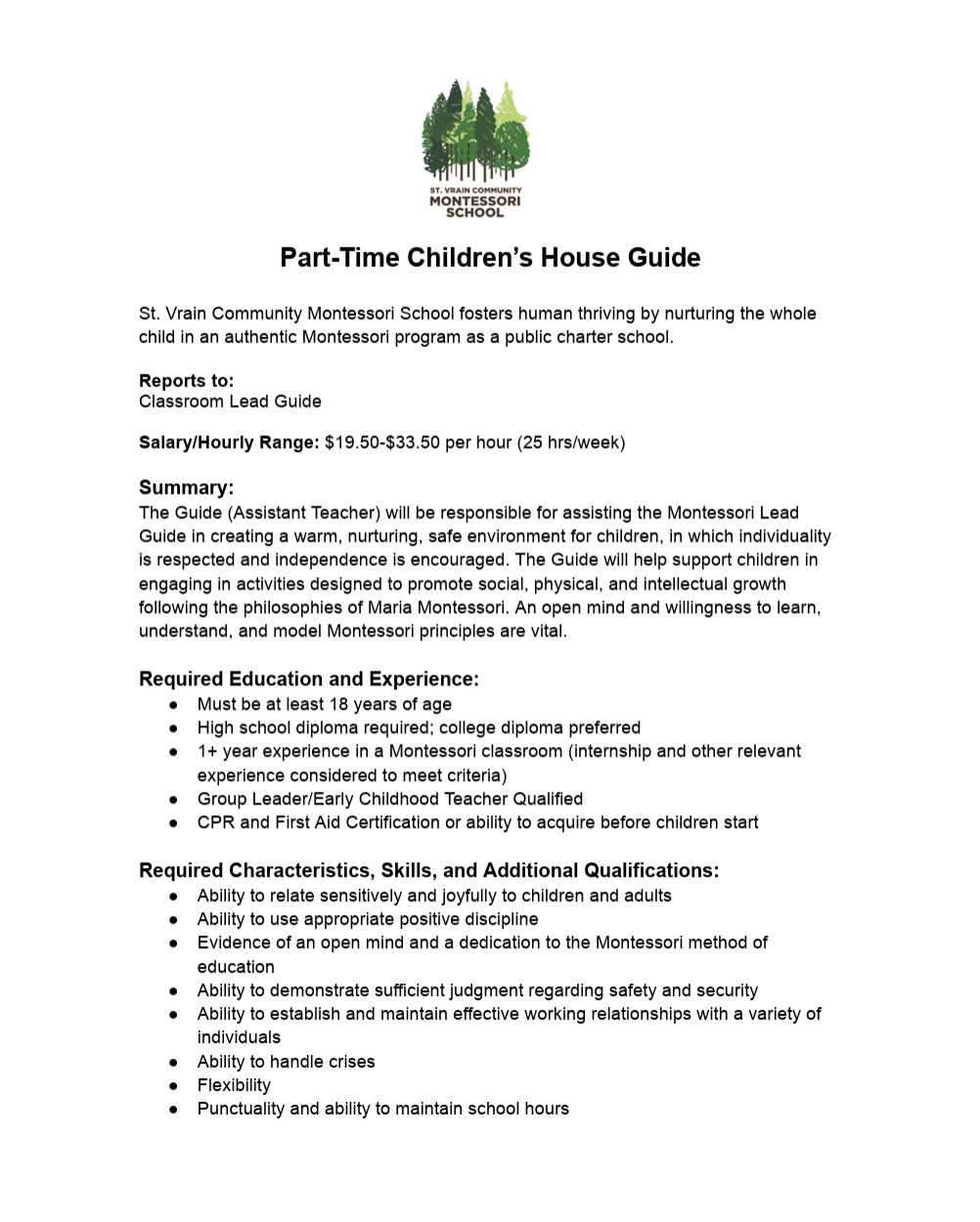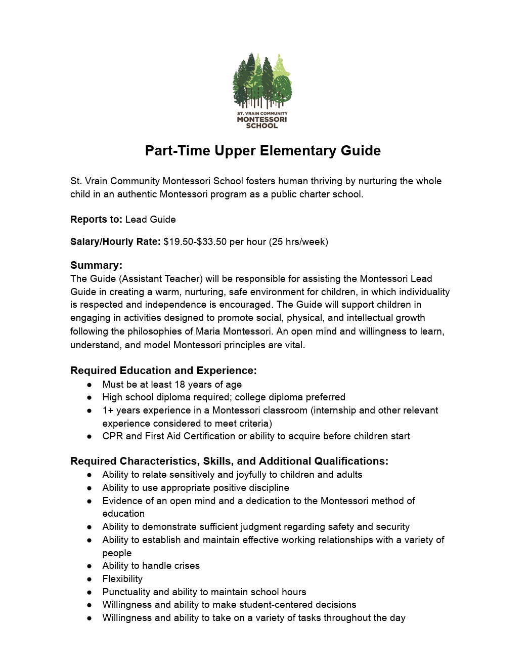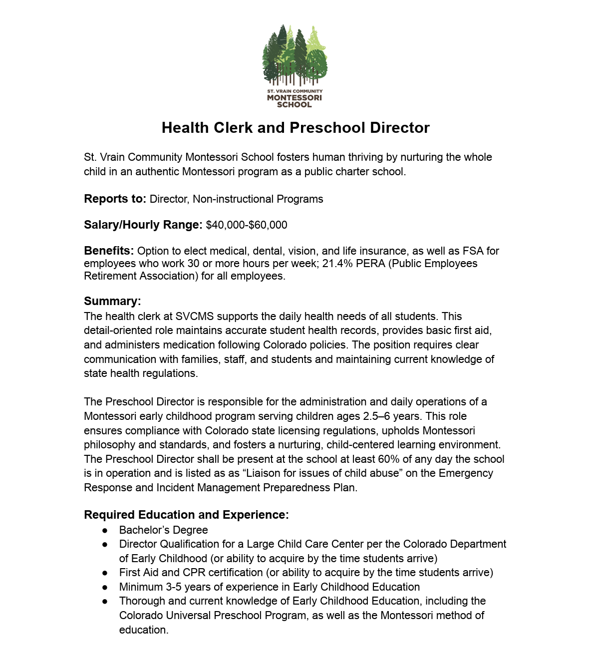 March 27, 2026 - St. Vrain Community Montessori - Multiple positions, Colorado, USA