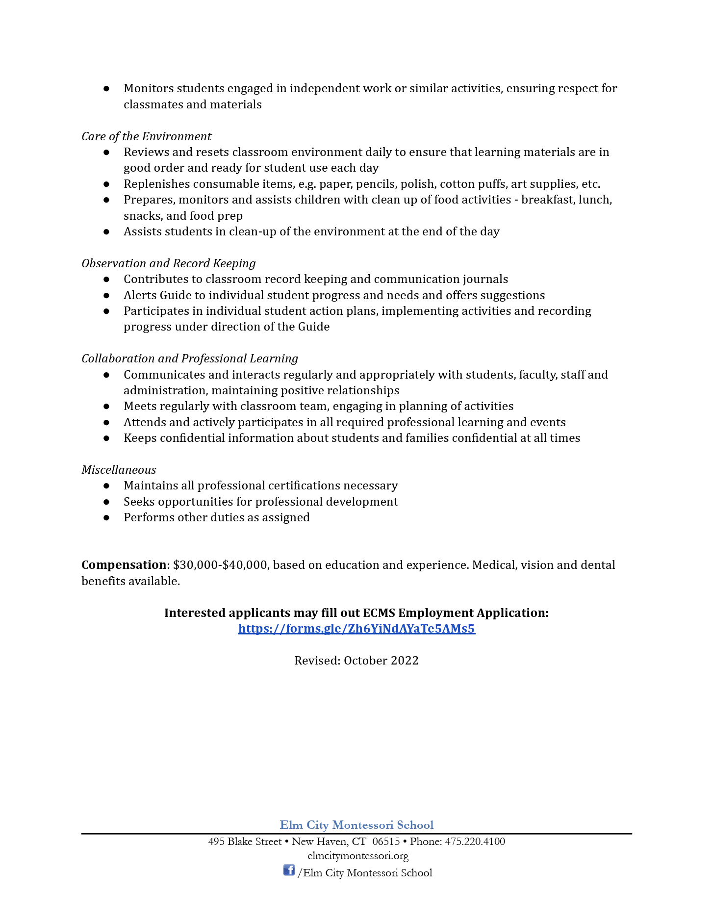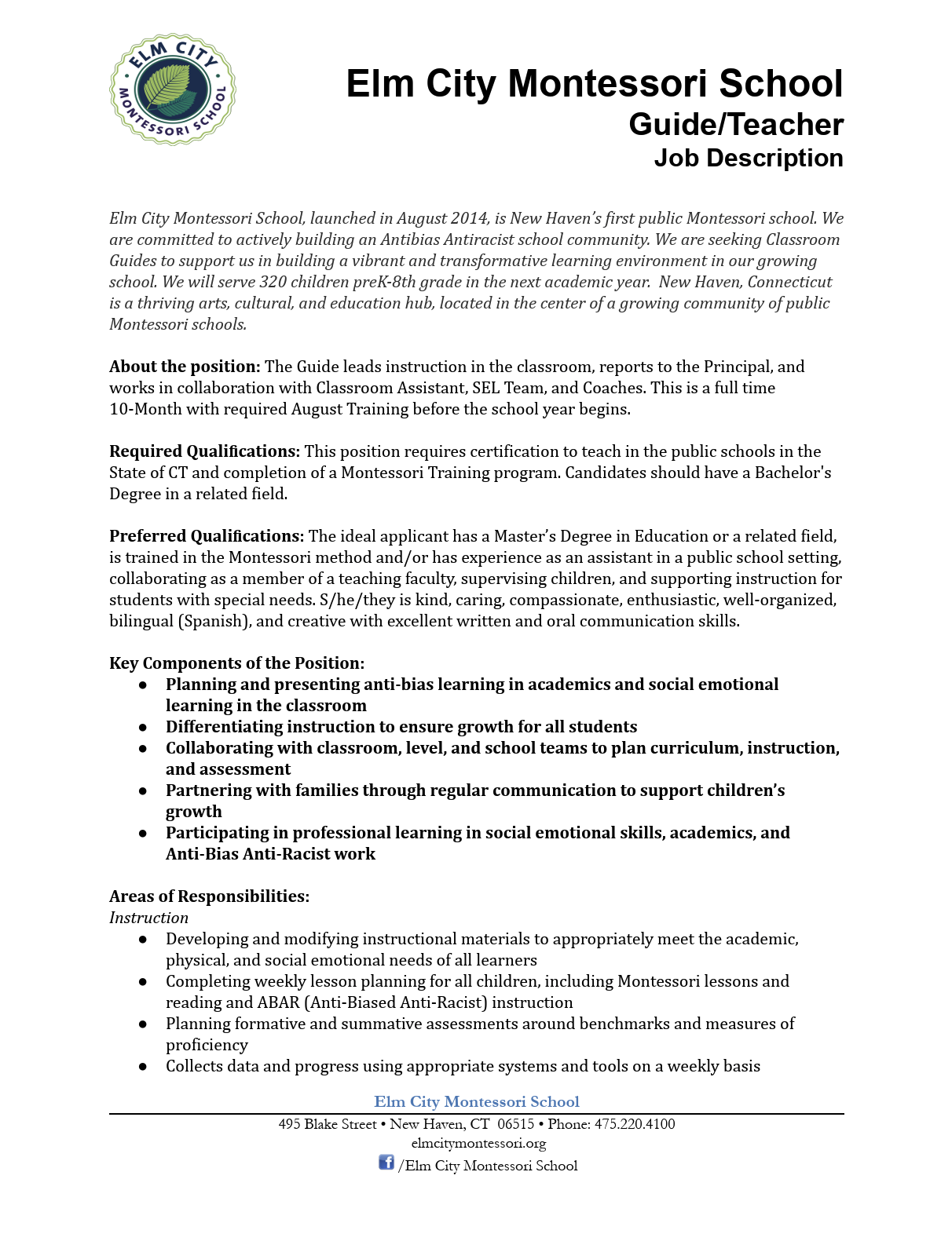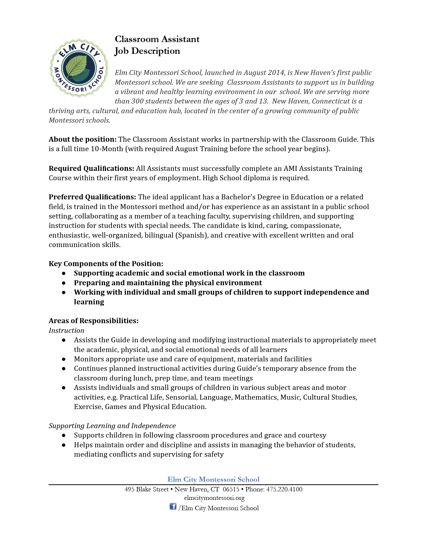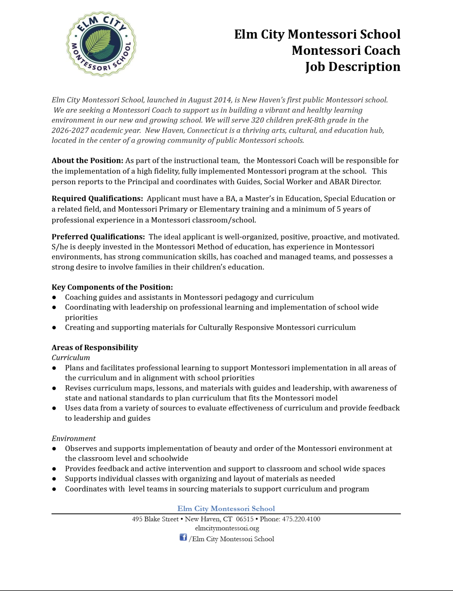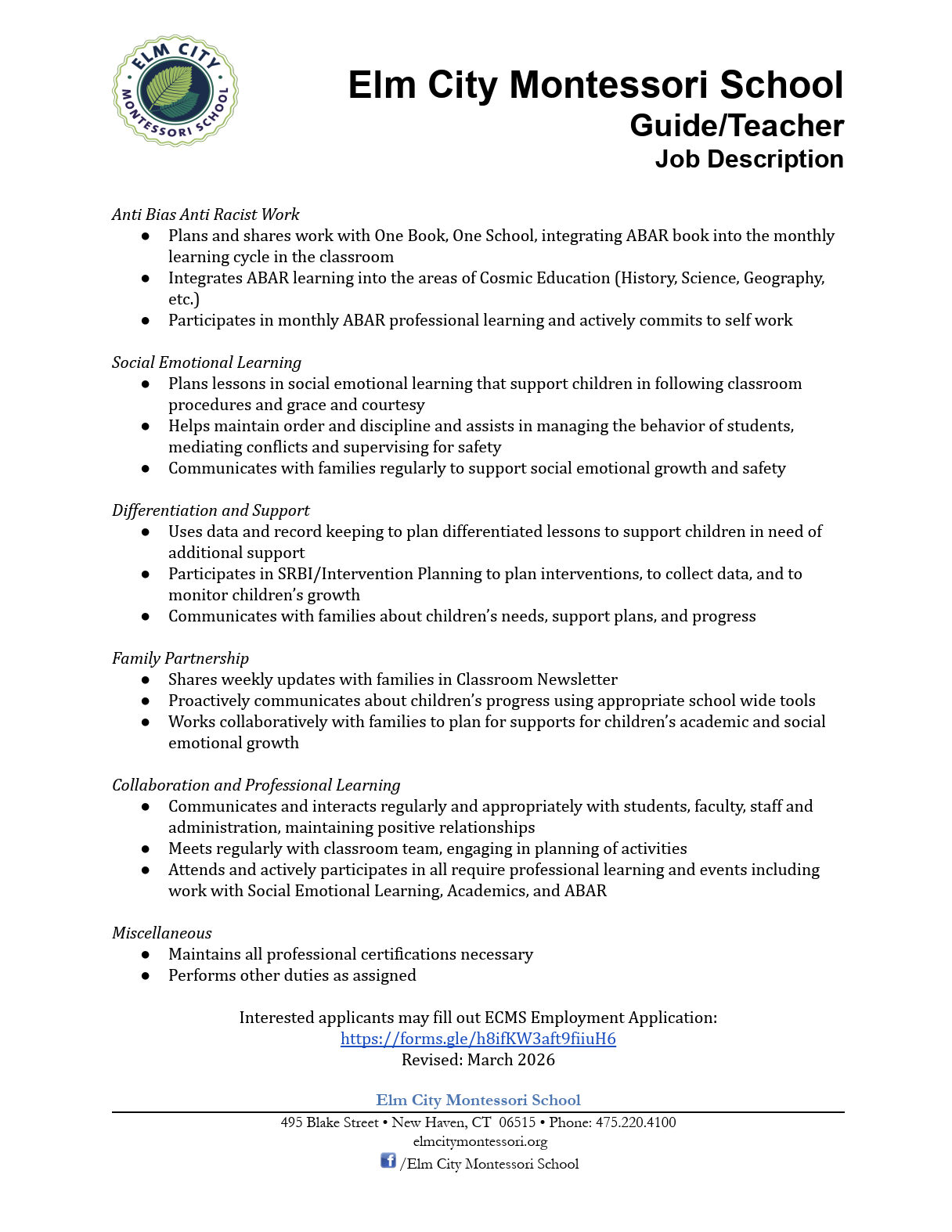 March 10, 2026 - Elm City Montessori School - Multiple Position - Connecticut, USA