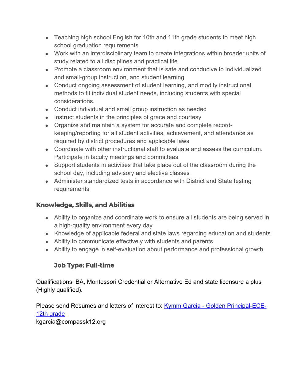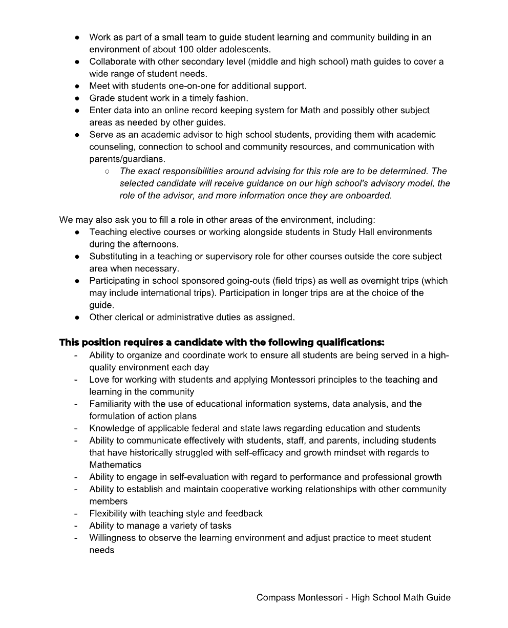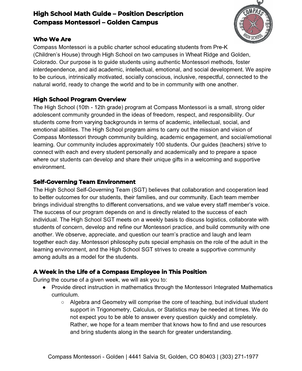 March 10, 2026 - Compass Montessori - Math and ELA positions - Colorado, USA